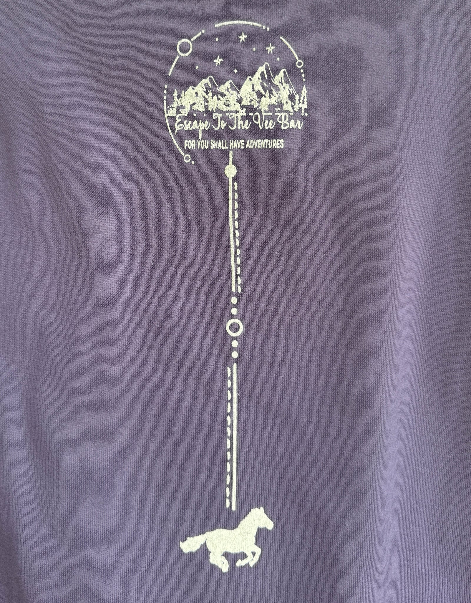 These sweatshirts feature a lovely feminine mountain scene, a sweet reminder of our favorite place to be. Full front design with a unique vertical design accent on the back. Available in 2 colors.